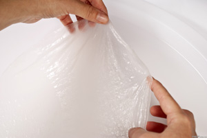 Izgatottam nyitogattuk a jellegzetes dobozokat és csalódottan láttuk, hogy nem érkezett meg a tekercs..., vagy mégis? Volt az egyikben egy átlátszóan fehér, kissé ragacsos valami, s bár tényleg tekercs formája volt, ismeretlennek tűnt.